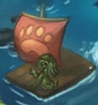 “You want to break the walls? Well, my name is Pinocchiat, and I can help you. Sorry about the wood floating in the water. The cthulhus (a Cthulhu is a mythical creature) tried to build a glass bridge spanning all of Region Atlantis, but the wooden supports they were using got destroyed by Bane, the whale sleeping underneath. Since then, they have given up. Oh, there’s even one over there. Somehow, he’s still on his sailboat. I could get him out of there so that you can use his sailboat to get around.”